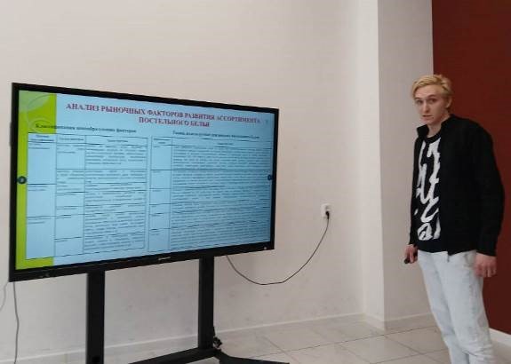 Так, по заказу предприятия «Родники‑текстиль» Богдан Соколов работал над развитием системы товарного менеджмента и цифровых каналов продвижения тяжелых тканей, а Александр Котыгин – над совершенствованием ассортимента и экспертизой качества махровых полотенец. Олег Чигарев провел исследование качества и потребительских свойств постельного белья для «Красной Талки», а Нафтал Биленду - системы товарного менеджмента, продвижения и реализации косметической продукции в «Текстильном мире Иваново РИО». Шуйская компания «Аквариус» получит от Евгения Дмитриева рекомендации по применению методов товарного менеджмента при анализе ассортимента и потребительских свойств компьютерной техники.