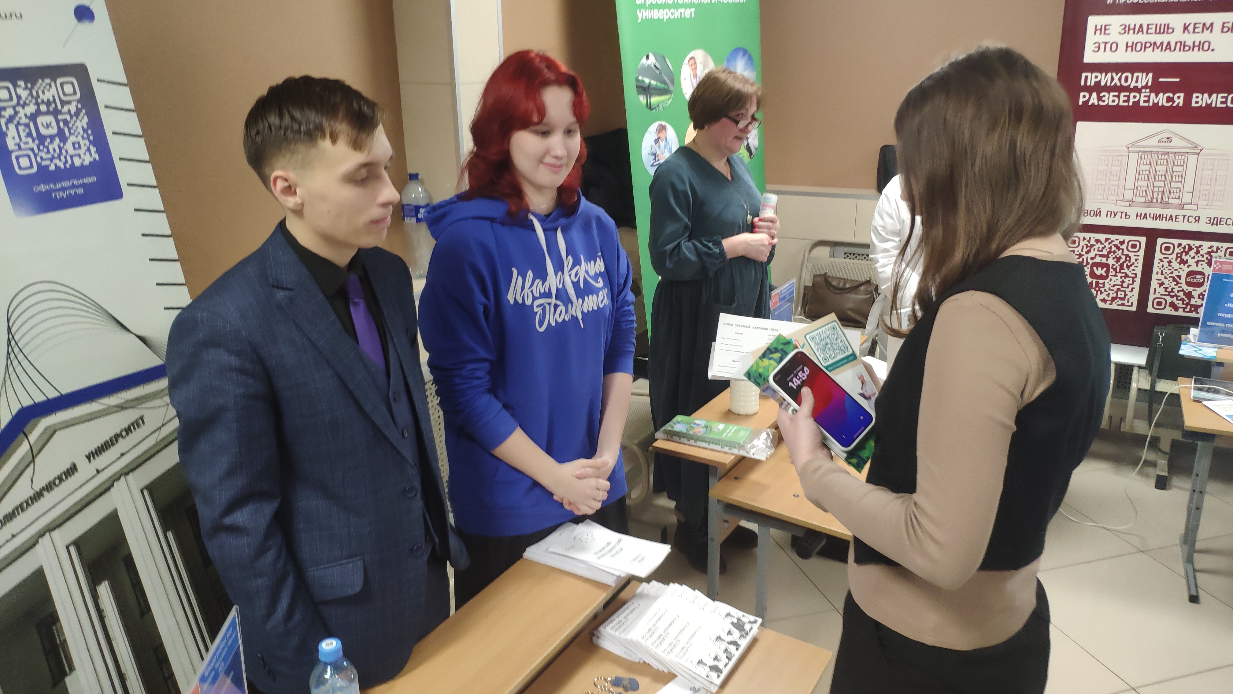 С презентацией о перспективах обучения в ИВГПУ выступил проректор по образовательной деятельности и воспитательной работе Алексей Матрохин. А после официальной части школьники смогли подробнее узнать об особенностях поступления и действующих образовательных программах. В этом им помогали начальник отдела довузовской подготовки Юлия Острякова и студенты-амбассадоры Политеха Алексей Квашнин и Полина Шаганова.