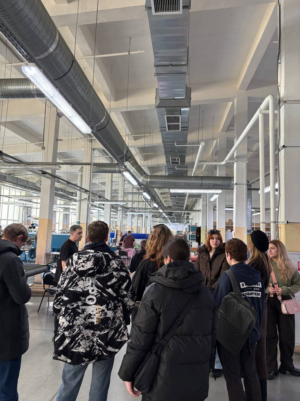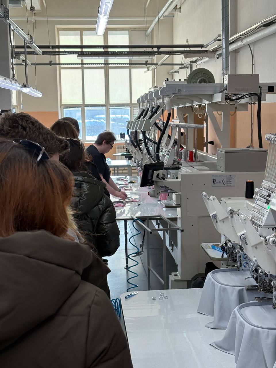 Гостеприимные сотрудники компании провели для гостей экскурсию по цехам. Особый интерес у студентов вызвал цех трафаретной печати, где будущие технологи и дизайнеры понаблюдали за процессом изготовления трафаретов для нанесения рисунков на ткань. В цехе вышивки им показали современные вышивальные автоматы и образцы готовой продукции, а в колор-студии ребята смогли увидеть, как специалисты работают с цветом, подбирают оттенки и тестируют краски.