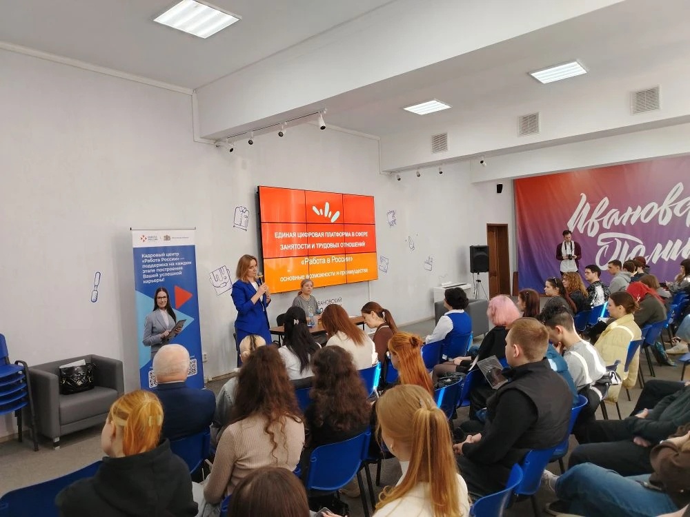 С приветственным словом к студентам обратилась начальник отдела практики и трудоустройства Елена Власова. Во встрече приняли участие директор филиала Центра занятости населения Ивановской области «Ивановский» Алена Филонова, заместитель начальника отдела Наталия Мазуренко, инспектор Владислав Пудышев.